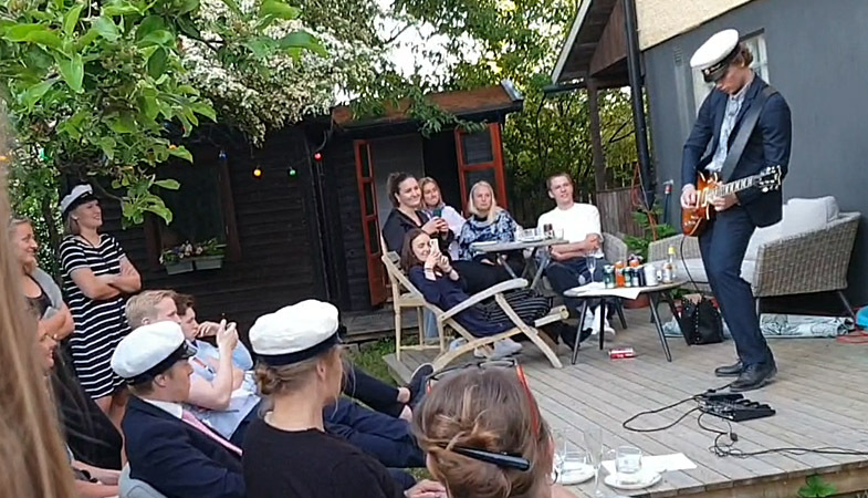 Avslutning efter gymnasiet. En covid-anpassad spelning hemma på bakgården.